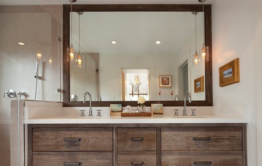 Желаете придать ванной черты определенного стиля? Следует купить зеркало для ванны — главный предмет декора, несущий имиджевую нагрузку. Поместите его на видное место, рядом с источником света. Позаботьтесь о подходящей рамке для зеркального полотна. В зависимости от выбранного направления, изготовление проводится из соответствующих материалов: