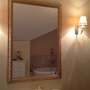 Купить в багетной мастерской зеркальное полотно в раме из МДФ — элементарный способ обеспечить ванную комнату надежным, красивым предметом декора. Для покупателей, предпочитающих натуральное дерево, существенное замечание: рама из деревянного багета вполне надежна при обработке водоотталкивающим лаком.